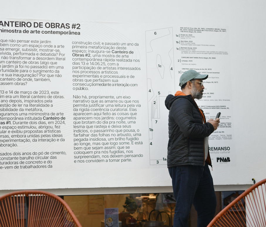 Por que não pensar este jardim também como um espaço onde a arte possa emergir, subsistir, mostrar-se, ser vivida, performada e debatida? Por que não transformar a desordem literal de um canteiro de obras (algo que este jardim já foi no passado) em uma oportunidade para o surgimento da arte e sua inauguração? Por que não um canteiro de onde, também, brotassem obras? Em 13 e 14 de março de 2023, este jardim era um literal canteiro de obras. Um ano depois, inspirados pela sugestão de ler na literalidade a possibilidade da metáfora, inauguramos uma minimostra de arte contemporânea intitulada Canteiro de Obras #1. Durante dois dias, em 2024, este espaço estimulou, abrigou, fez circular e exibiu propostas artísticas diversas, embora unidas pelas ideias da experimentação, da interação e da colaboração. Passados dois anos do pó de cimento, do constante barulho circular das misturadoras de concreto e do vai-e-vem de trabalhadores da construção civil; e passado um ano da primeira metaforização deste espaço; inaugura-se Canteiro de Obras #2, uma mostra de arte contemporânea rápida realizada nos dias 13 e 14.06.25, com a participação de artistas interessados nos processos artísticos experimentais e processuais e de obras que perfazem sua consecução mediante a interação com o público visitante. Não há, propriamente, um eixo narrativo que as amarre ou que nos permita justificar uma leitura pela via da rígida coerência curatorial. Elas aparecem aqui feito as coisas que aparecem nos jardins: cogumelos que brotam do dia pra noite, uma lesma que rasteja e deixa seus indícios, o passarinho que pousa, o farfalhar das folhas no arbusto, uma pegada insidiosa, um brilho fugidio ao longe, mas que logo some. E está bem que sejam assim: que se coloquem pra nós fugidias, nos surpreendam, nos deixem pensando e nos convidem a tomar parte.