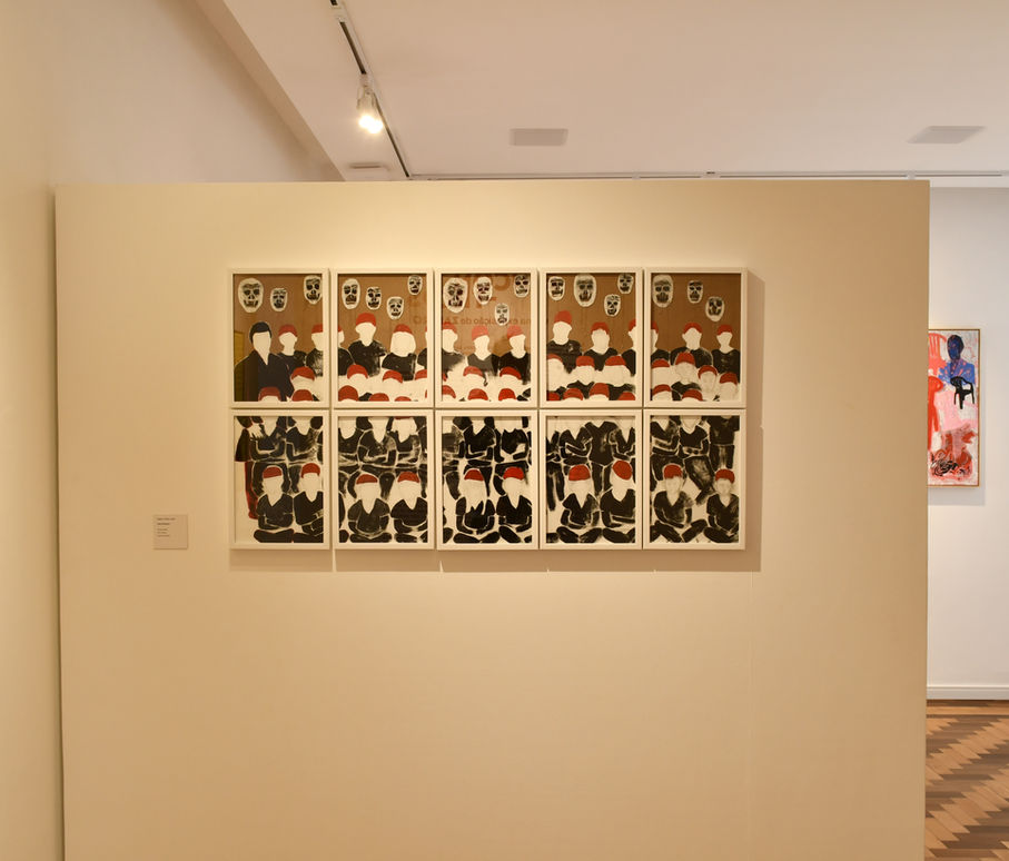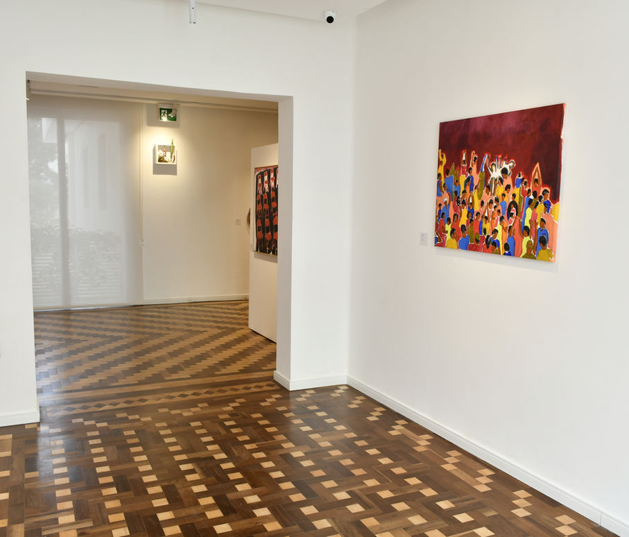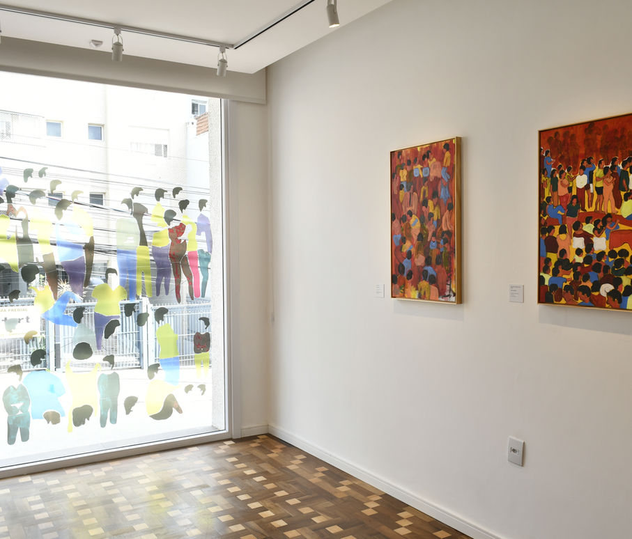 No terceiro e último núcleo, a série Multidões apresenta os trabalhos mais recentes da artista, onde imagens quase abstratas dão corpo a grupos de pessoas reunidas em cenas de festas, celebrações e manifestações. Pintar a multidão é uma afirmação da potência do estar junto: da vibração dos corpos e da força do coletivo. As obras capturam não só a forma, mas a energia do calor dos encontros – aquilo que escapa à imagem e, ainda assim, permanece nela.