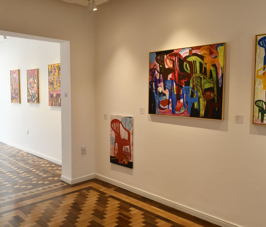 Tomando o bar como lugar de reencontro popular, onde se compartilha dor e alegria, zarro nos oferece cenas que carregam uma trilha sonora própria e estão povoadas de promessas: cadeiras e camadas potenciais de pessoas em campos de cor vibrantes, à espera de alguém ou de algo – um corpo, uma conversa, um gesto de cura. O bar, aqui, é rito e abrigo. É oferenda cotidiana e lugar possível de reparação.